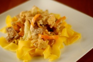 Vegetable Stroganoff Two Ways A vegetable stroganoff with sour cream, mushrooms or cauliflower, and tempeh makes a comforting dinner. Serve it over egg noodles or rice.